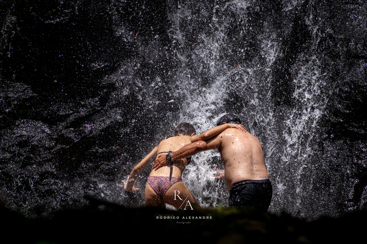 Ensaio ao ar livre junto a natureza e um banho de cachoeira